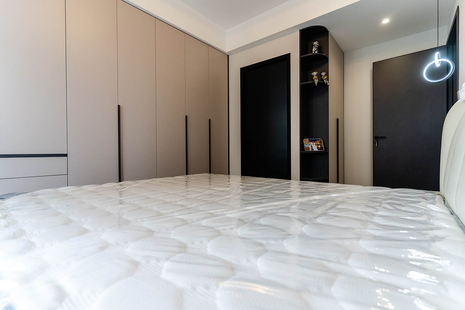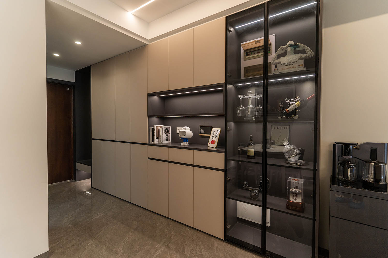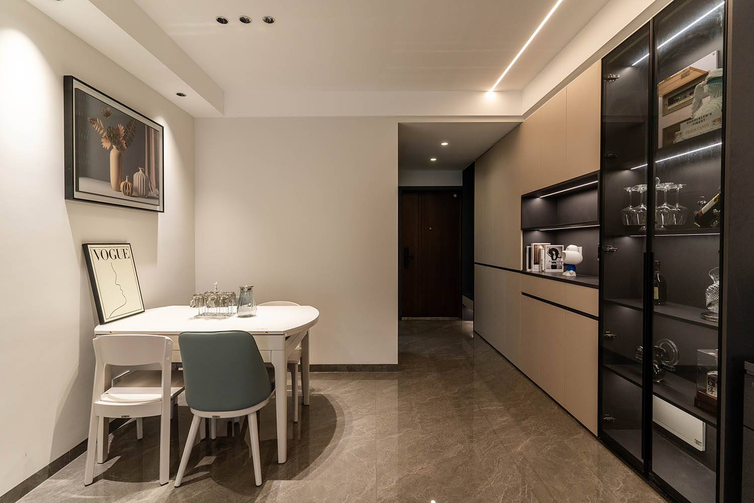 本案的核心設(shè)計(jì)理念是 “簡(jiǎn)而不減” 。旨在通過精準(zhǔn)的布局、一體化的定制和克制的裝飾,實(shí)現(xiàn)功能性與美學(xué)的完美平衡。設(shè)計(jì)拒絕為形式而形式,每一處都回歸到居住的本質(zhì)需求,在滿足強(qiáng)大收納和流暢動(dòng)線的基礎(chǔ)上,通過材質(zhì)、光影和線條的細(xì)微變化,營(yíng)造出一個(gè)兼具理性邏輯與感性溫度的現(xiàn)代居所。