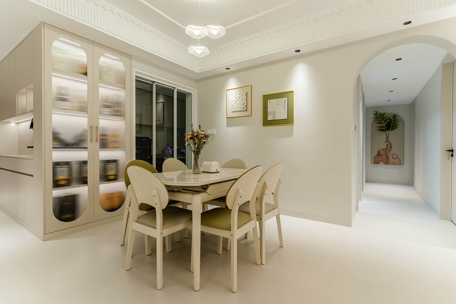 從審美角度看,這套設(shè)計(jì)成功實(shí)現(xiàn)了網(wǎng)紅元素與經(jīng)典氣質(zhì)的平衡。它既有奶油風(fēng)的溫柔治愈,又有現(xiàn)代風(fēng)格的簡(jiǎn)約利落;既能滿足社交展示的需求,又能提供私密舒適的個(gè)人空間。在這個(gè)125㎡的方寸之間,設(shè)計(jì)師用專(zhuān)業(yè)與創(chuàng)意,為業(yè)主打造了一個(gè)真正意義上的"理想家"——一個(gè)能讓人卸下疲憊、重獲能量的溫暖港灣