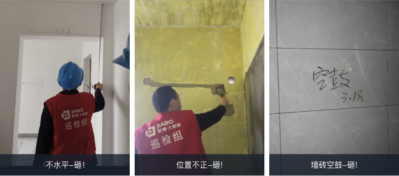 空鼓、對(duì)縫不齊等現(xiàn)象,現(xiàn)場立即砸掉重做,