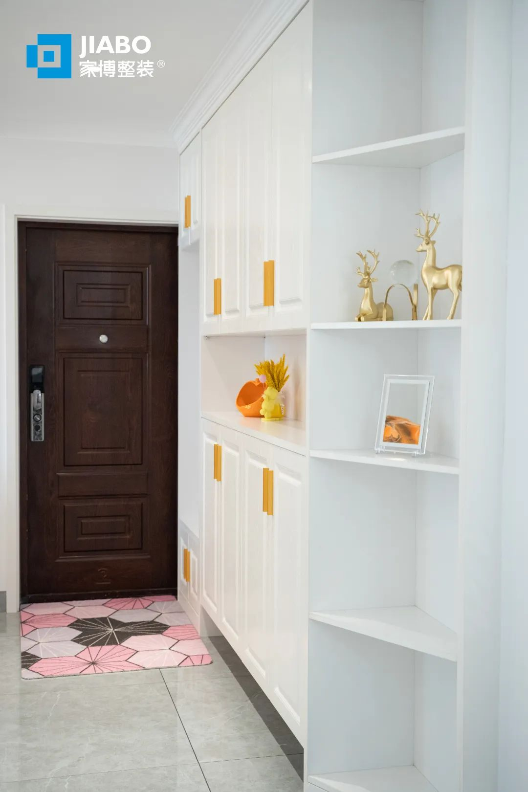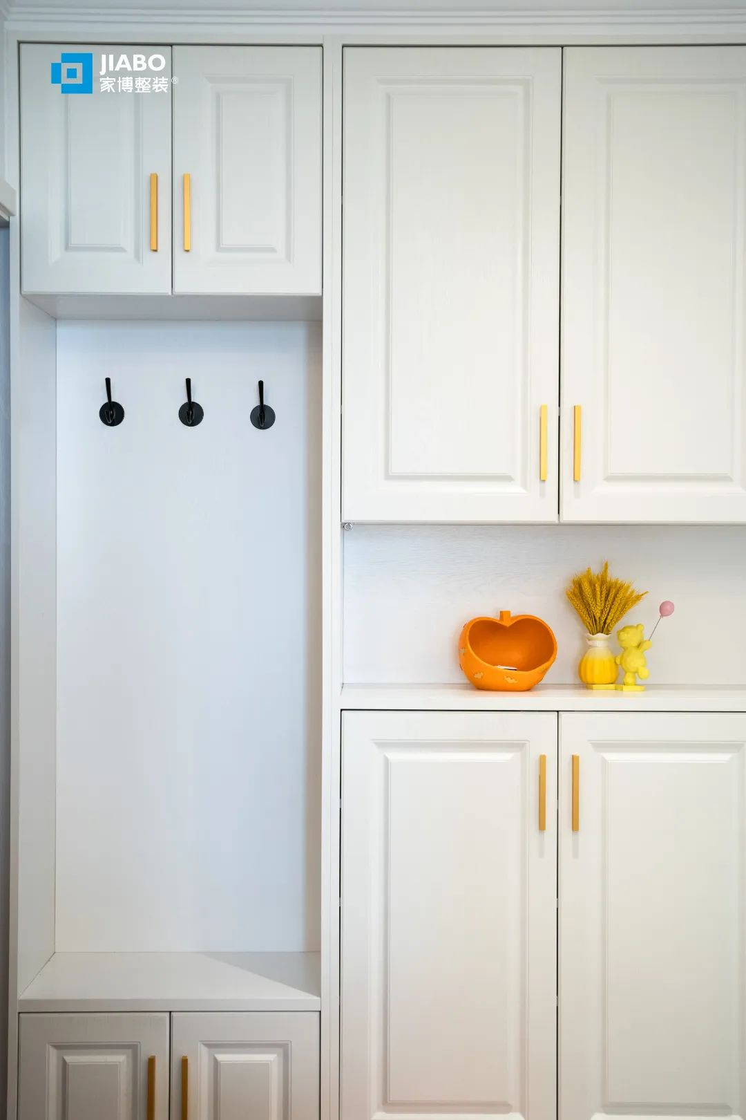 2.5米超長定制玄關(guān)柜,在收納鞋子之余,還大大增多了日常儲物空間。