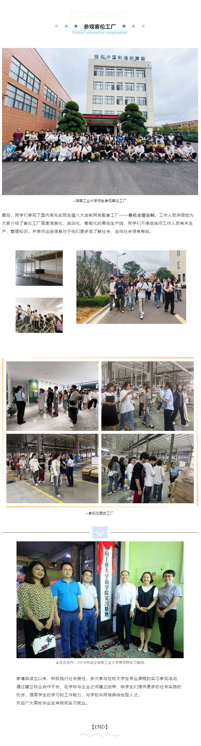 當(dāng)前位置 : 網(wǎng)站首頁(yè) > 裝修資訊 > 校企合作 | 湖南工業(yè)大學(xué)師生蒞臨家博參觀學(xué)習(xí)